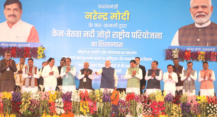 प्रधानमंत्री श्री नरेन्द्र मोदी ने कहा है कि पिछले 1 वर्ष में मध्यप्रदेश में विकास कार्यों को नई गति मिली है। आज मध्यप्रदेश में हजारों करोड़ की विकास परियोजनाओं की शुरुआत हुई है। भूतपूर्व प्रधानमंत्री स्व. अटल बिहारी वाजपेई के सपने को साकार करती हुई देश की पहली नदी जोड़ी परियोजना केन-बेतवा का आज यहाँ शिलान्यास हुआ है। इसके साथ ही देश के पहले फ्लोटिंग सोलर पॉवर प्रोजेक्ट, ओंकारेश्वर का भी शिलान्यास हुआ है। इसके लिए मध्यप्रदेश के “कर्मठ मुख्यमंत्री” डॉ. मोहन यादव की सरकार और यहां की जनता को बहुत-बहुत बधाई और शुभकामनाएं।