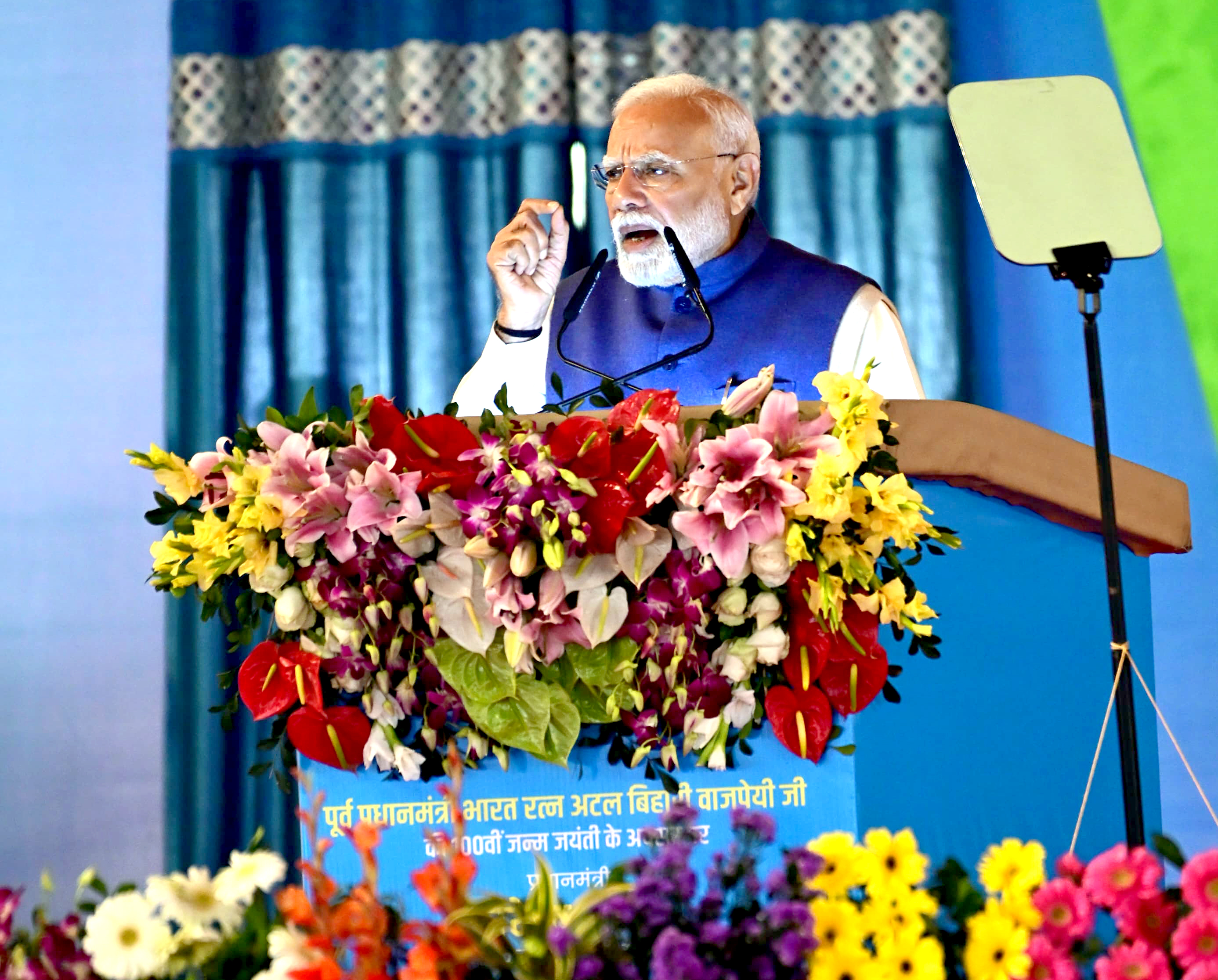 प्रधानमंत्री श्री मोदी ने अपने संबोधन की शुरूआत बुंदेलखंडी बोली में करते हुए कहा, ‘वीरों की धरती ई बुंदेलखंड पे रहबे बारे सबई जनन खों हमाई तरफ से हाथ जोड़के राम-राम पौंचे’। प्रधानमंत्री श्री मोदी ने कहा कि देश के विकास में अटल जी का योगदान सदैव याद रखा जाएगा। वे सुशासन के प्रतीक थे। आज उनकी जन्म शताब्दी के अवसर पर उनकी स्मृति में मध्यप्रदेश में 1153 अटल ग्राम सेवा सदन का निर्माण प्रारंभ हो रहा है, जिसकी पहली किश्त भी जारी की गई है। सुशासन हमारी सरकार की पहचान है। हमारे लिए जनहित, जनकल्याण और विकास सर्वोपरि है। हम जन सामान्य के लिए समर्पित हैं। आजादी के दीवानों ने देश के लिए अपना लहू बहाया था, हम उनके सपनों को पूरा करने के लिए पसीना बहाते हैं। अच्छी योजनाओं के साथ ही उन्हें लागू करना और उनका लाभ 100% लाभार्थी तक पहुंचाना सुशासन का पैमाना है।