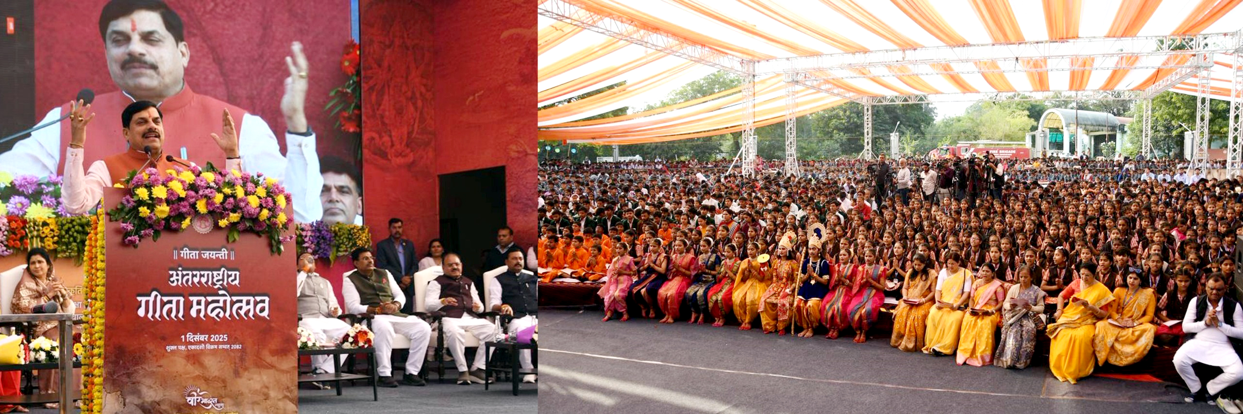 मुख्यमंत्री डॉ. मोहन यादव ने कहा है कि श्रीमद्भगवद्गीता एक अद्भुत, अनुपम और पवित्र ग्रंथ है। गीता के अध्ययन मात्र से ही मनुष्य के जीवन के सभी प्रश्नों और सभी जिज्ञासाओं का शमन (समाधान) हो जाता है। उन्होंने कहा कि गीता का ज्ञान ही सम्पूर्ण सृष्टि के समग्र ज्ञान और चेतना का मूल आधार है। योगीराज भगवान श्रीकृष्ण ने मानव जीवन को धर्म, कर्म और मर्म का वास्तविक मार्ग दिखाया है। भगवान श्रीकृष्ण ने कर्मयोग, निष्काम कर्म और धर्म पालन को ही मनुष्य के जीवन का सर्वोच्च मार्ग इंगित किया है। उन्होंने वीर अर्जुन को सिखाया कि लौकिक जगत में रहते हुए भी मनुष्य को अपने कर्तव्य (स्वधर्म) का पालन करना चाहिए। कर्म करते हुए भी फल की इच्छा नहीं करनी चाहिए। यही अलौकिक धर्म का मार्ग है, जिससे मनुष्य मोक्ष और परम शांति की ओर बढ़ता है। भगवान श्रीकृष्ण ने विश्व समुदाय को कर्मयोग के जरिए ही अपने धर्म का पालन करने की प्रेरणा दी। मुख्यमंत्री डॉ. यादव सोमवार को रवीन्द्र भवन में आयोजित अंतर्राष्ट्रीय गीता महोत्सव को संबोधित कर रहे थे। मुख्यमंत्री डॉ. यादव ने सभी प्रदेशवासियों को गीता जंयती की शुभकामनाएं दीं। उन्होंने कहा कि गीता का ज्ञान हम सबको सिखाता है कि मनुष्य के आत्मा रूपी पिंड को एक दिन अंतत: परमात्मा में ही समाहित हो जाना है।