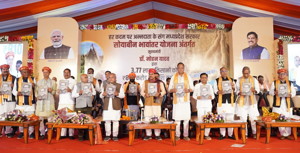 मुख्यमंत्री डॉ. यादव रविवार को रतलाम जिले के जावरा में सोयाबीन भावांतर भुगतान योजना के अंतर्गत किसानों को भावांतर राशि वितरण के लिए आयोजित राज्य स्तरीय सम्मेलन को संबोधित कर रहे थे। इस अवसर पर मुख्यमंत्री ने 3.77 लाख से अधिक सोयाबीन उत्पादक